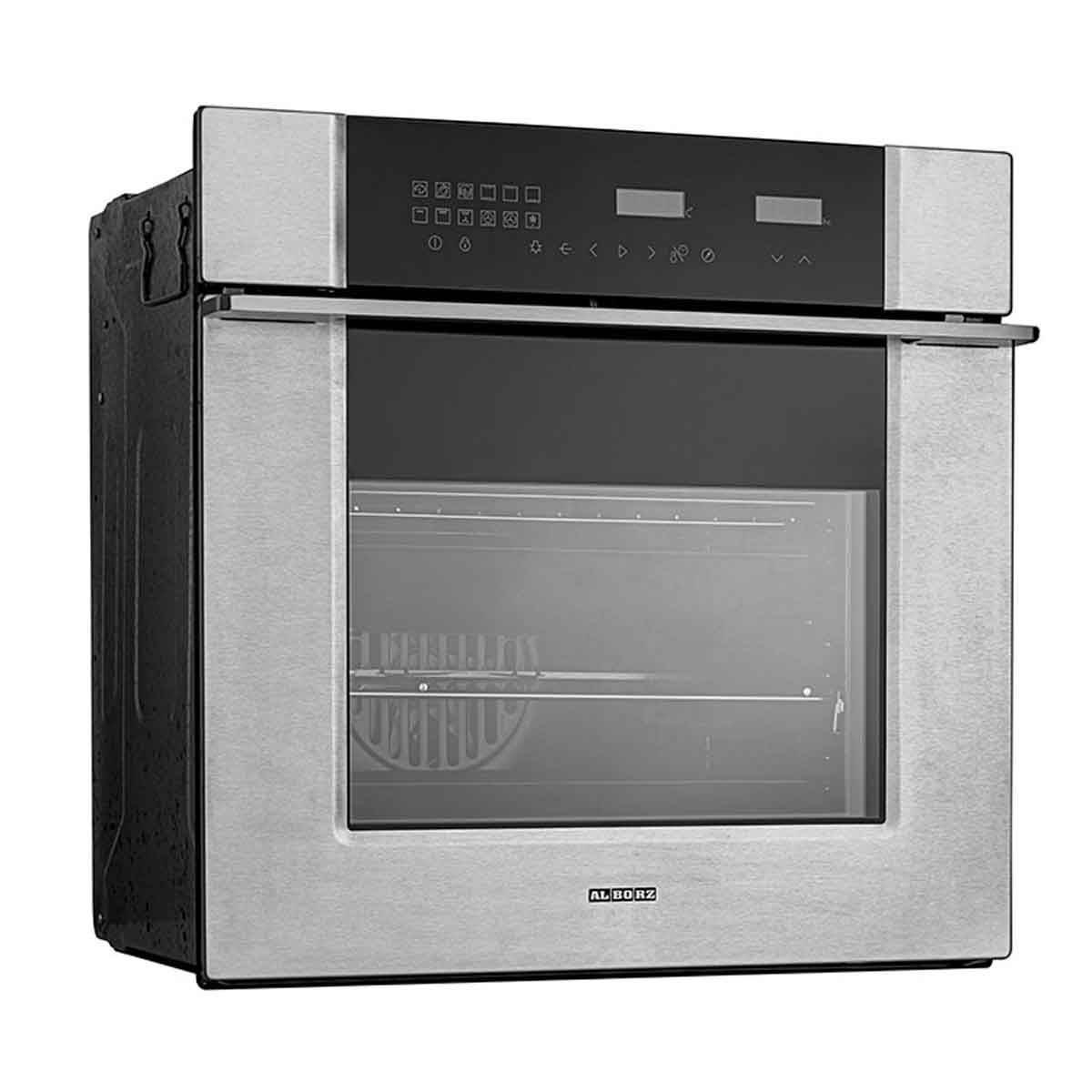 فر توکار FE6 استیل البرز این محصول دارای عرض 59.4 سانتیمتر، ارتفاع 59.4 سانتیمتر و عمق 54 سانتیمتری می باشد.این فر از جنس شیشه ( مقاوم در برابر ضربه) می باشد..ظرفیت فر 60 لیتر در نظر گرفته شده است.نحوه باز شدن درب فر های استیل البرز به صورت Drop Down است.دارای صفحه کنترل لمسی می باشد.فر برقی مدل نام برده دارای تایمر پخت به همراه 12 برنامه پخت و صفحه نمایشگر LCD است.صفحه ی کنترلی این فر مشکی، تمام لمسی (اسکرین تاچ) است.مهمترین ویژگی این فر وجود سیستم یخ زدایی در آن است.